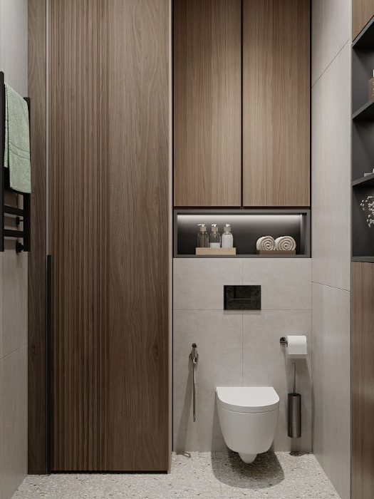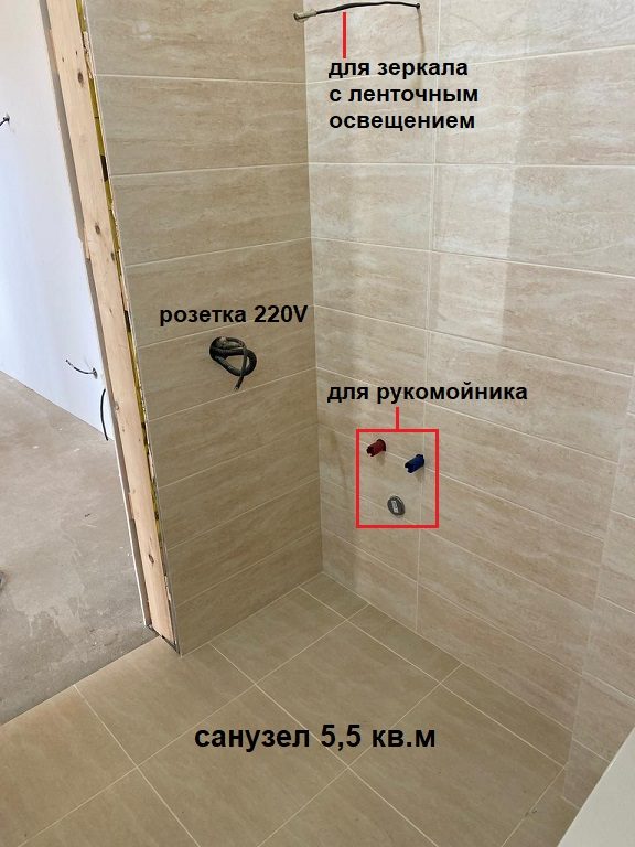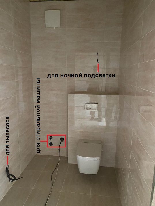 6 – выключатели санузла: верх освещение, ленточная ночная подсветка на выкатном шкафу