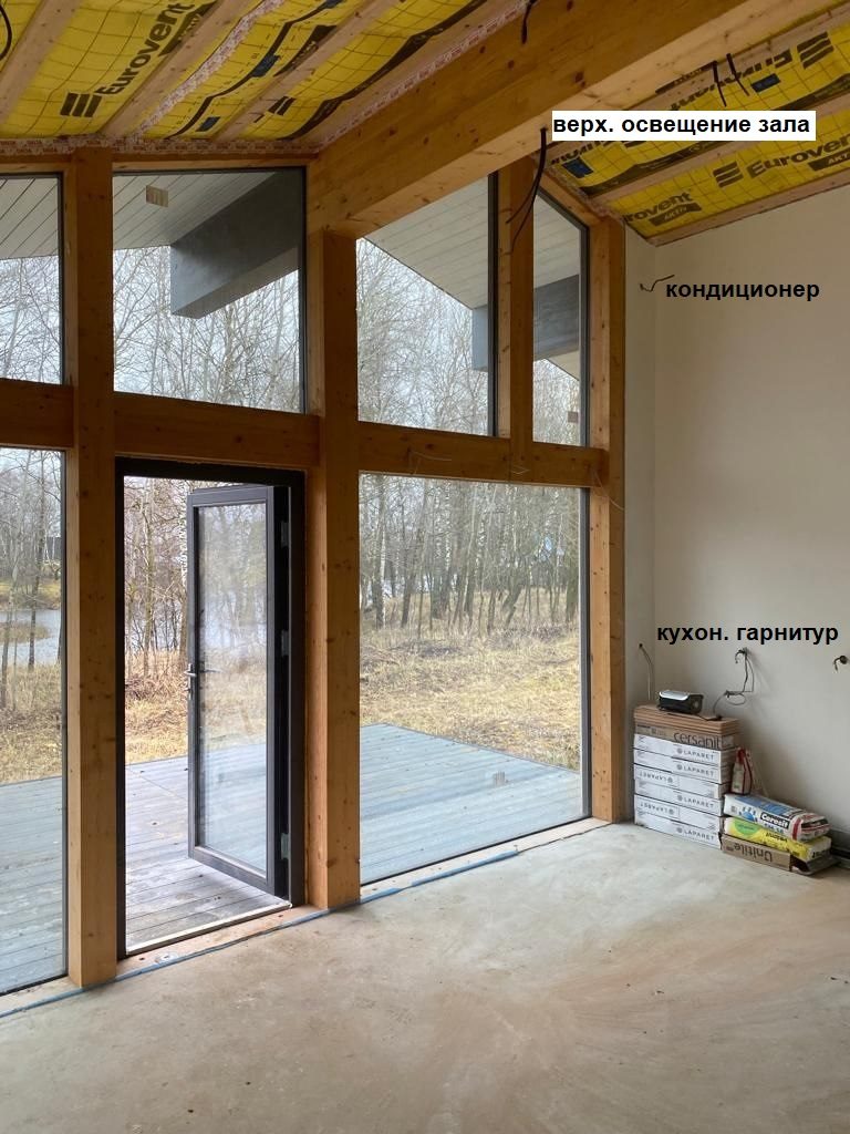 Как видно из фотографий дома, отделка внутренних помещений не завершена. Будущий хозяин может придать своему дому полное ощущение уюта и комфорта по собственному вкусу: оставить верхние балки открытыми или закрыть их натяжным потолком, покрыть зал паркетом или керамической плиткой, а стены покрасить или наклеить обои, выбрать мебель в магазине или заказать индивидуально, и т.д.