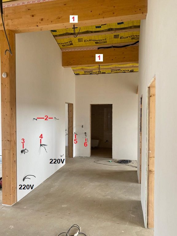 5 – дублер выключателя верхнего освещения холла и библиотеки (первый выключатель у входной двери)